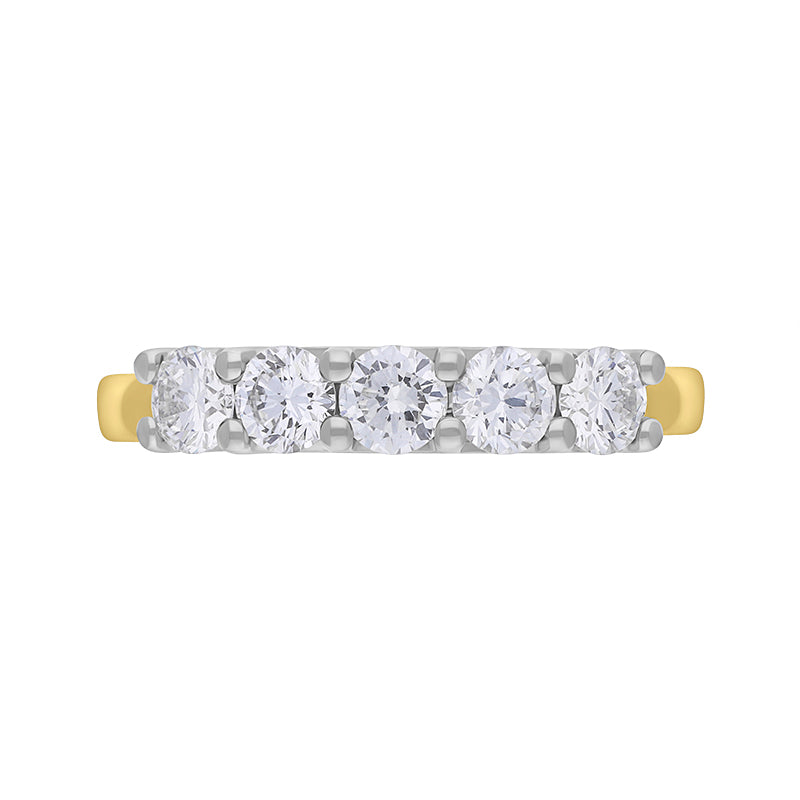 18ct Yellow Gold Platinum 1.00ct Diamond Five Stone Half Eternity Ring - FEU-2878 (FEU-2878)