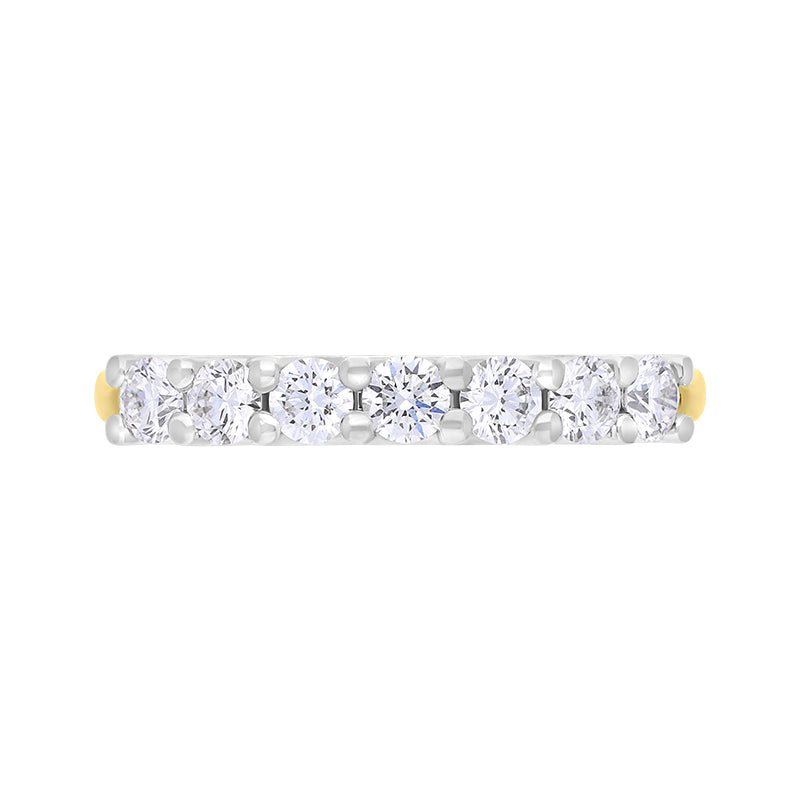 This stunning 18ct yellow gold half eternity ring features seven round brilliant cut diamonds totalling 0.50ct set in platinum. The 18ct yellow gold band gives this beautiful ring a solid and substantial weight, making this a piece that will be treasured for generations to come.