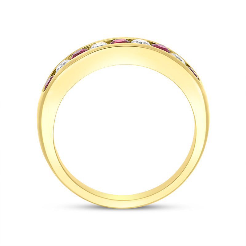 18ct Yellow Gold Ruby Diamond Channel Set Half Eternity Ring - FEU-2435 (FEU-2435)