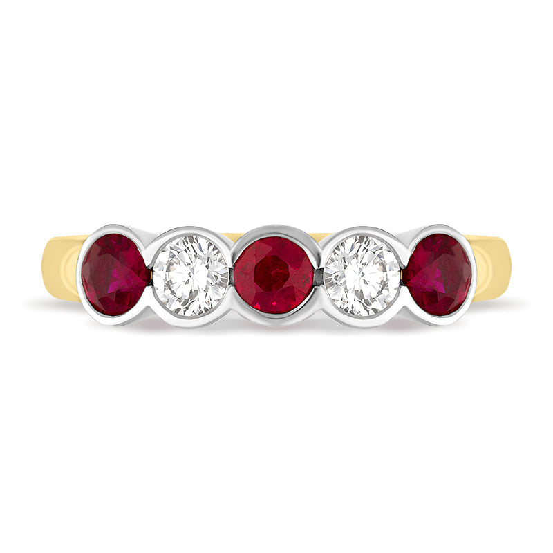 18ct Yellow Gold Ruby Diamond Half Eternity Ring