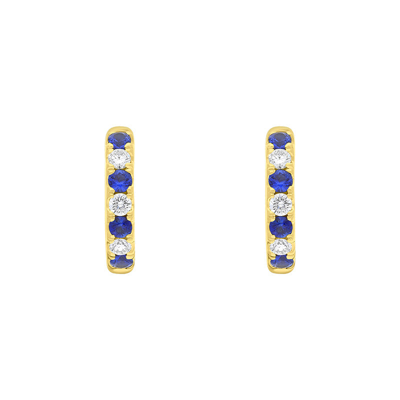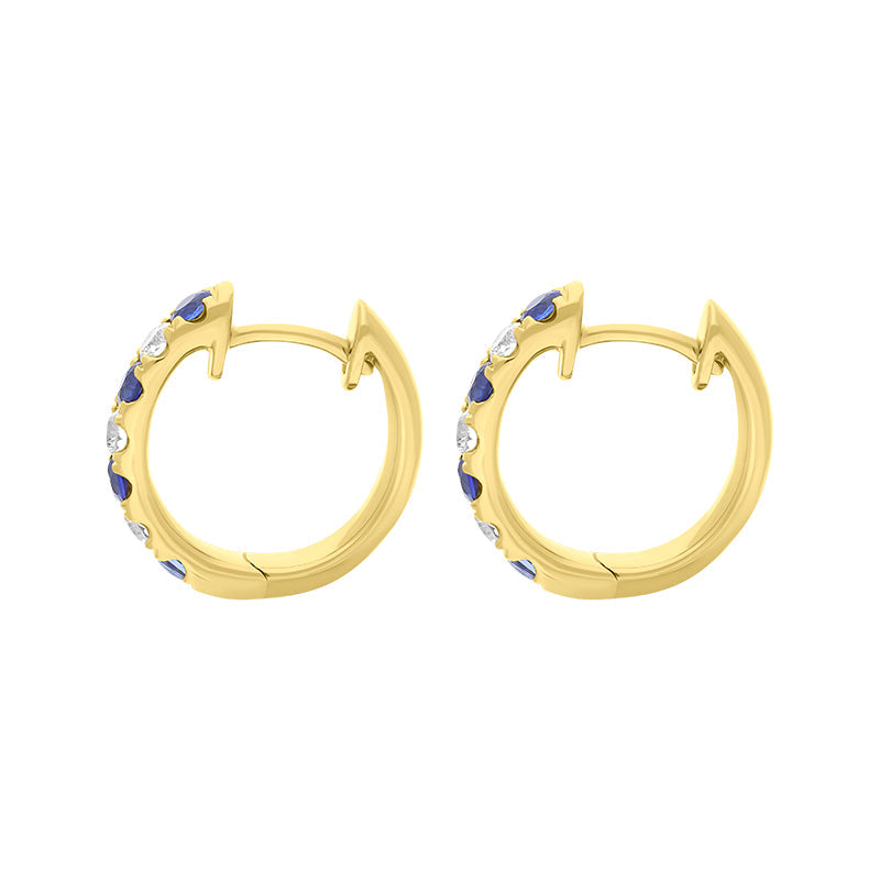 18ct Yellow Gold Sapphire Diamond Seven Stone Hoop Earrings - FEU-2726 (FEU-2726)