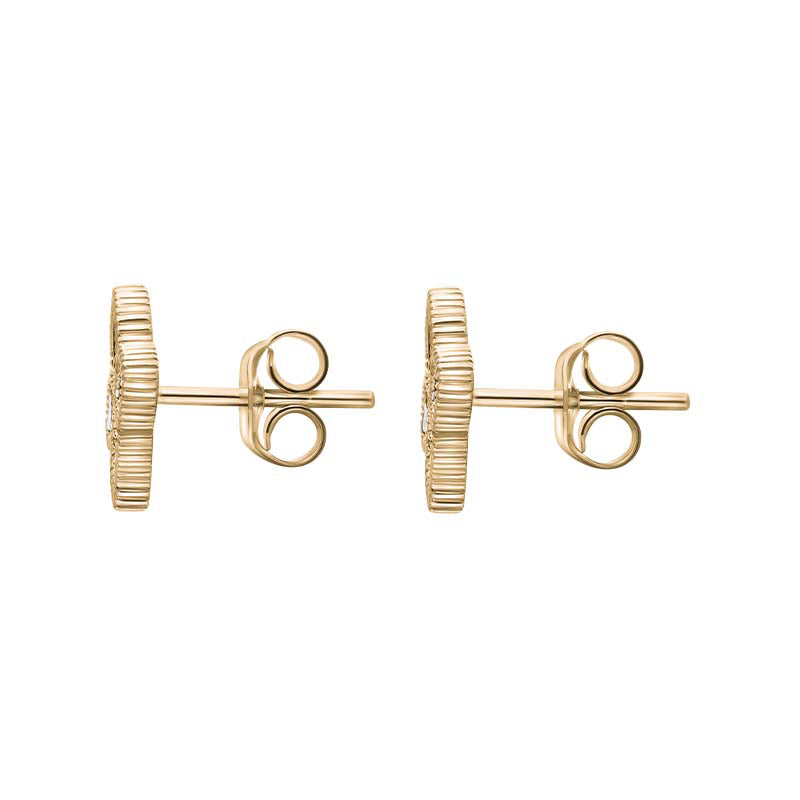 These elegant stud earrings features four stunning marquise shaped cabochons of the finest Mother of Pearl stone in the shape of a flower. The flowers are surrounded with a rope edge detail for a unique, stylish finish. The striking Mother of Pearl forms a stunning combination with the 18ct yellow gold, the perfect look for every occasion. Presented on post and butterfly fitments for secure wear.