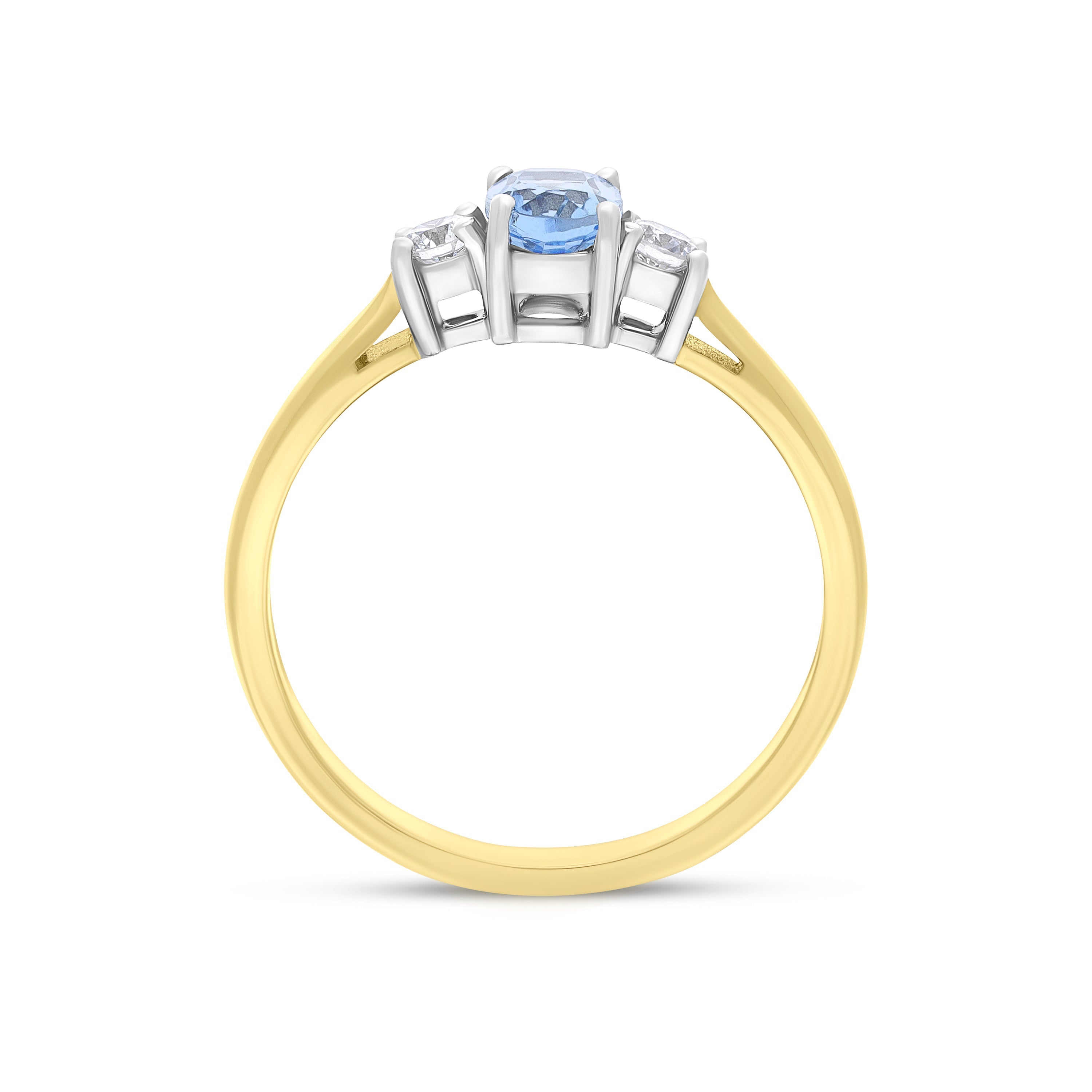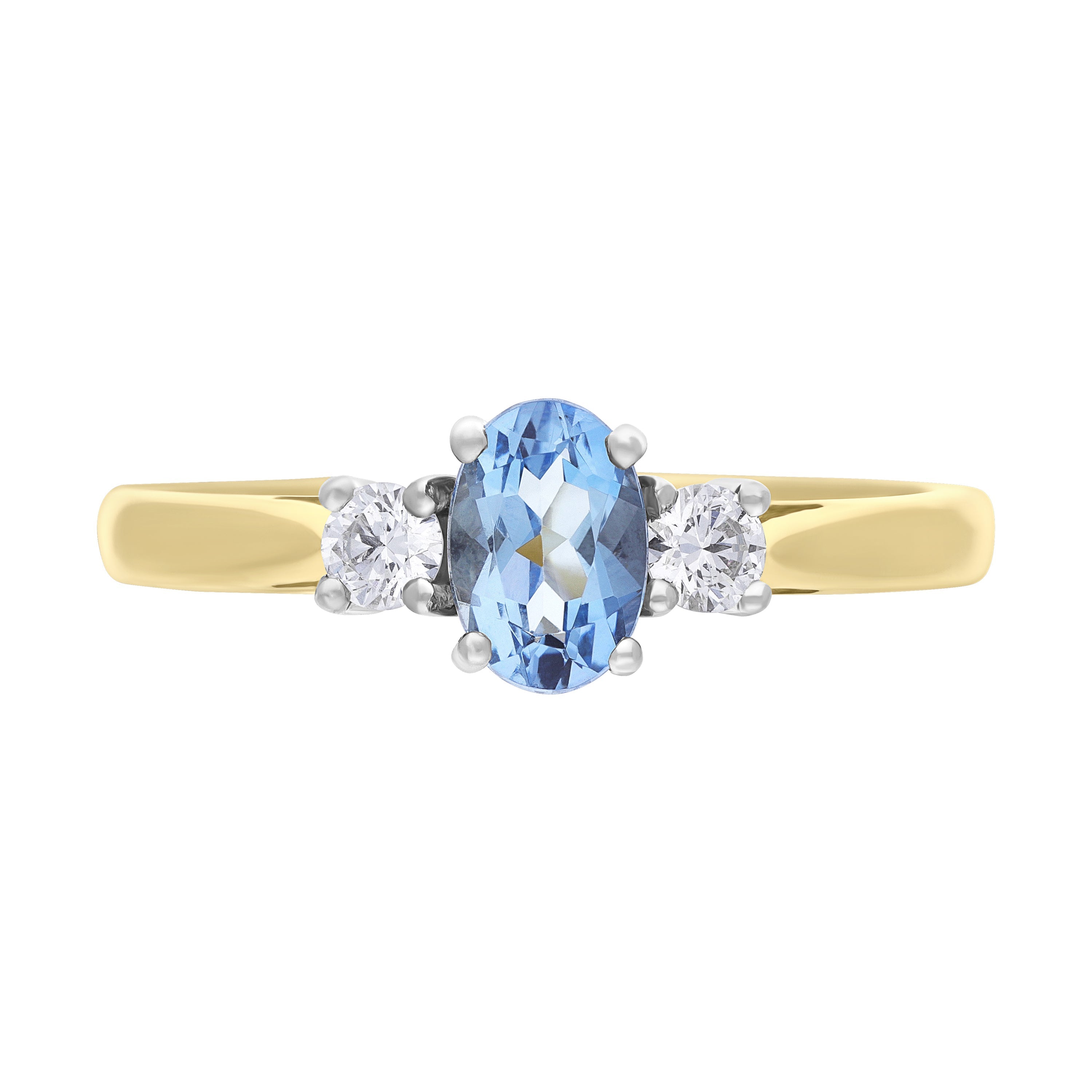 18ct Yellow Gold 0.47ct Aquamarine 0.14ct Diamond Three Stone Ring - FEU-3019 (FEU-3019)