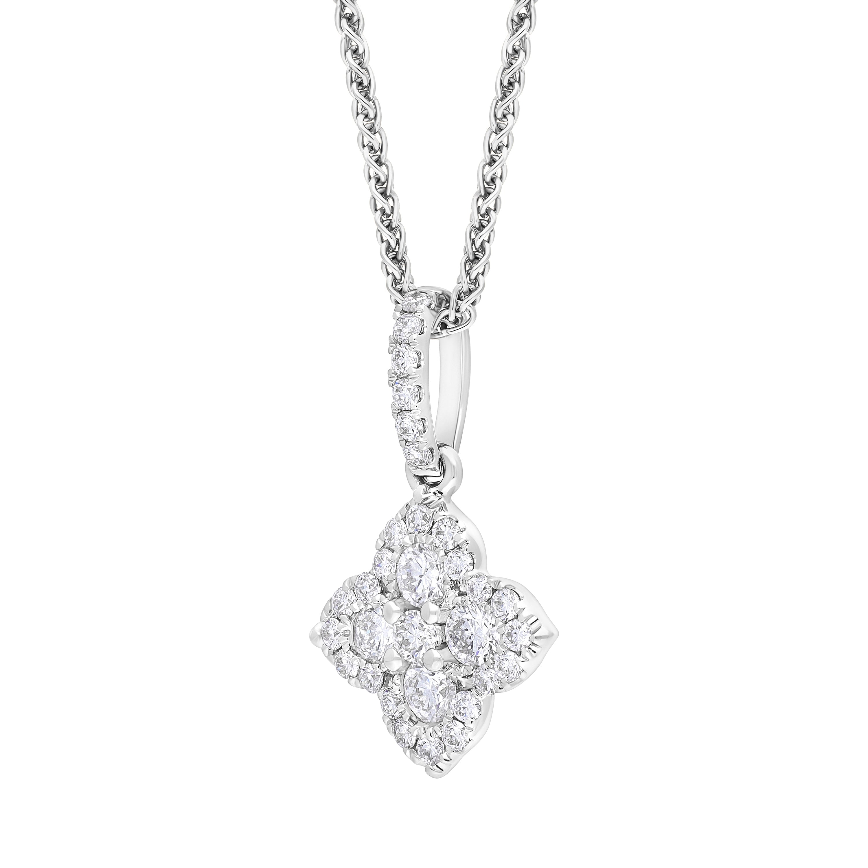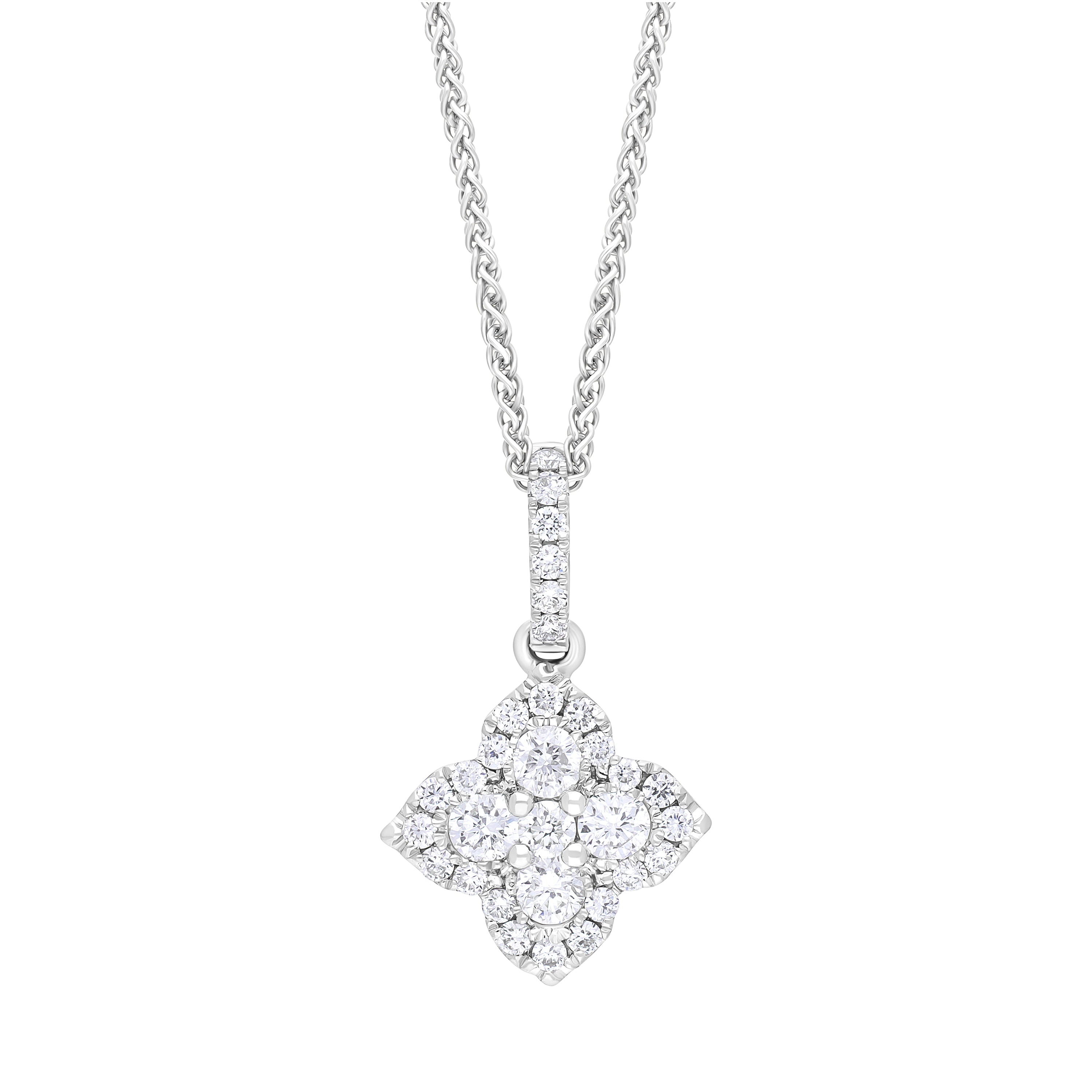 18ct White Gold 0.50ct Diamond Clover Cluster Necklace, FEU-3029.