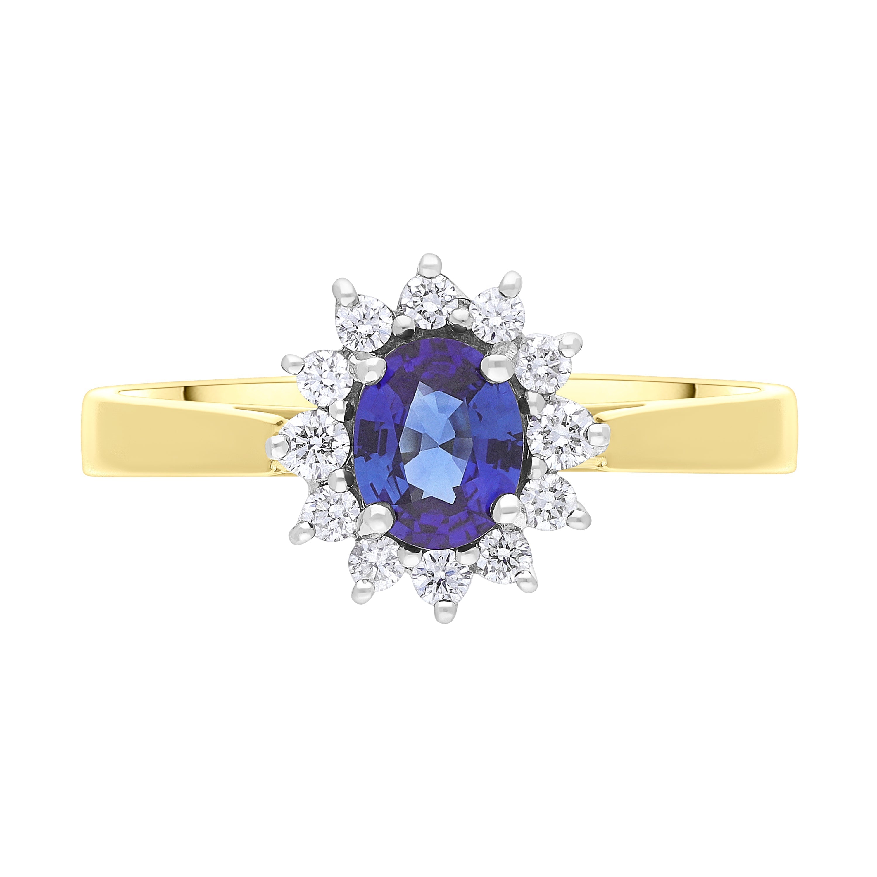 18ct Yellow Gold 0.43ct Sapphire 0.12ct Diamond Oval Claw Cluster Ring, FEU-2983