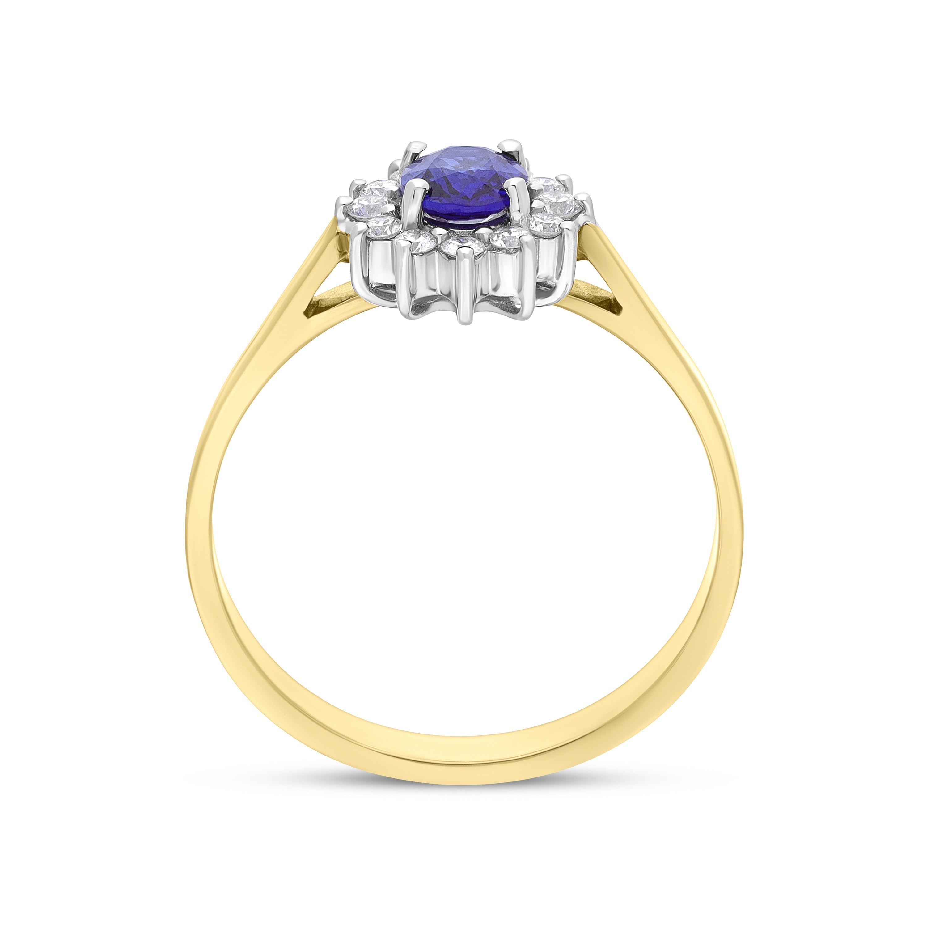 18ct Yellow Gold 0.43ct Sapphire 0.12ct Diamond Oval Claw Cluster Ring
