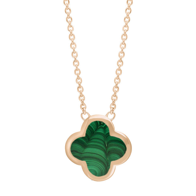 9ct Rose Gold Malachite Bloom Large Four Leaf Clover Polished Edge Pendant