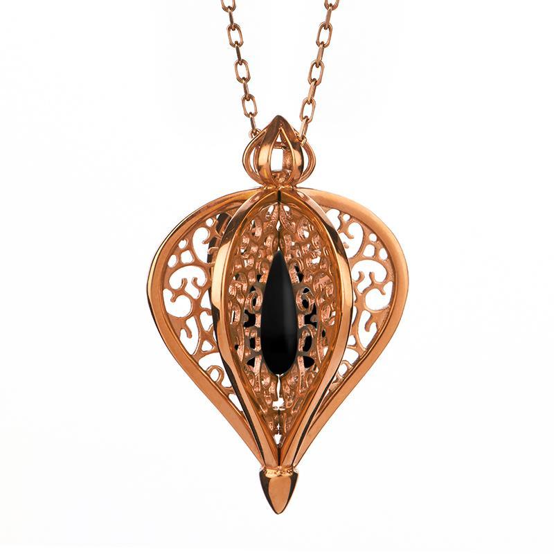9ct Rose Gold Whitby Jet Flore Filigree Small Necklace P2338C