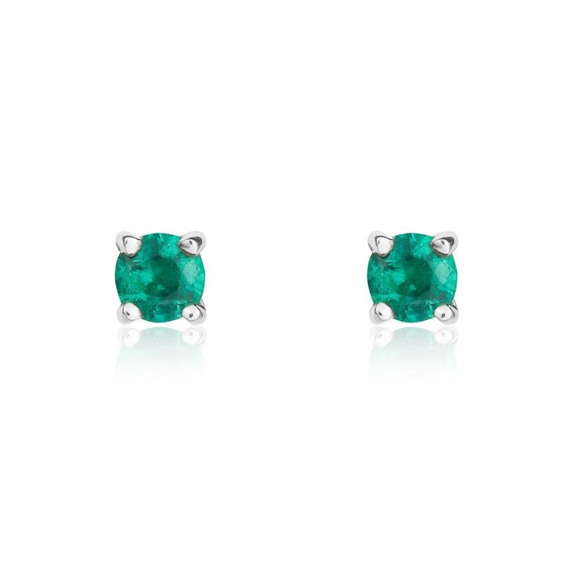 9ct White Gold Emerald 3mm Round Claw Set Stud Earrings. 33-22-054.