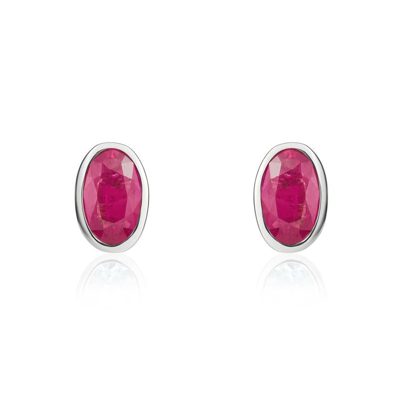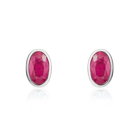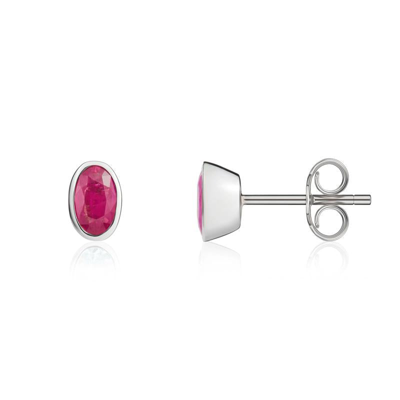 9ct White Gold Ruby 5x3mm Oval Rub Over Set Stud Earrings. 33-23-036.