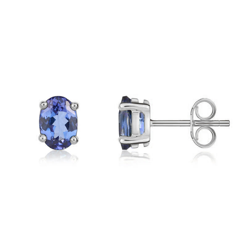 9ct White Gold Tanzanite 7x5mm Oval Claw Set Stud Earrings. 33-24-089.