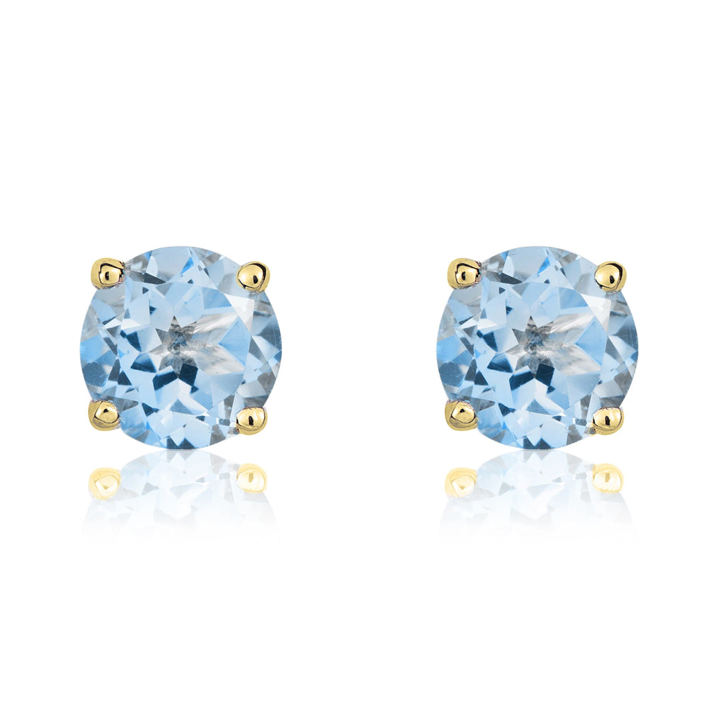 9ct Yellow Gold Aquamarine 5mm Round Claw Set Stud Earrings