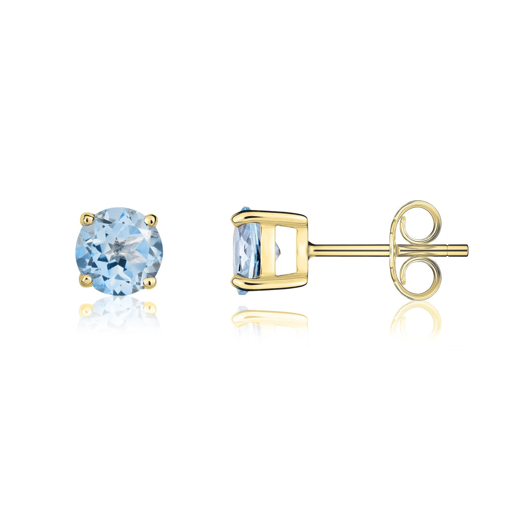 9ct Yellow Gold Aquamarine 5mm Round Claw Set Stud Earrings. 33-25-056.