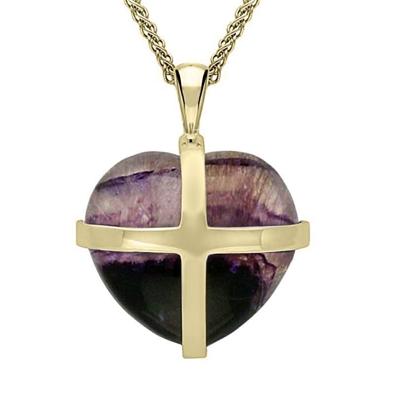 9ct Yellow Gold Blue John Large Cross Heart Necklace, P1542.