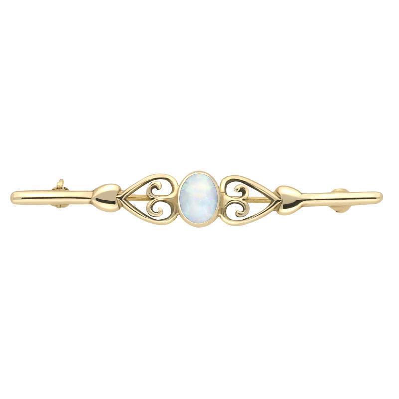 9ct Yellow Gold Opal Heart Bar Brooch, M021
