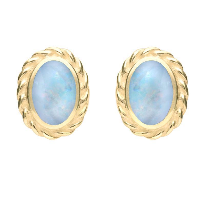 9ct Yellow Gold Opal Rope Edge Earrings, E289.