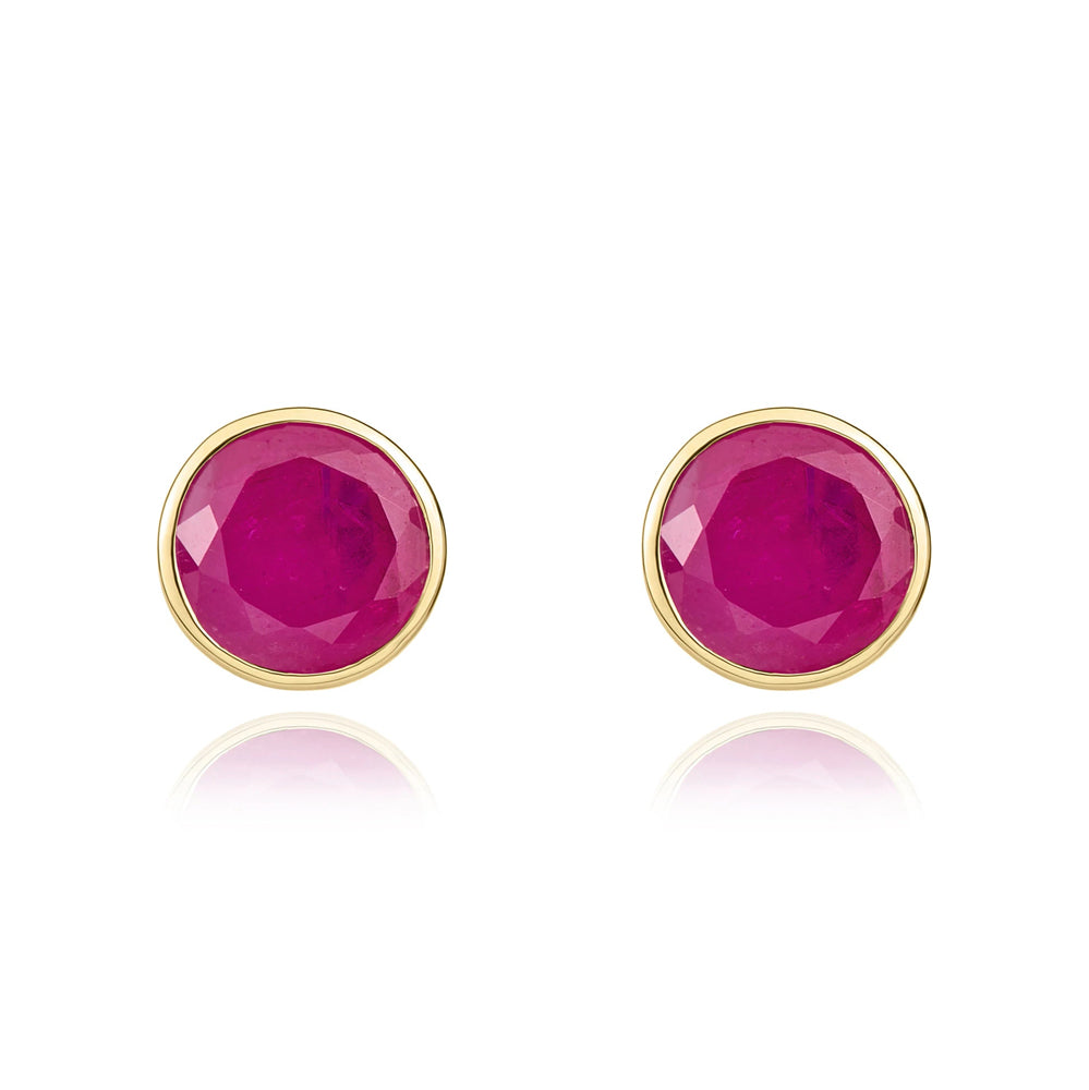 9ct Yellow Gold Ruby 5mm Round Rub Over Set Stud Earrings. 33-23-020.
