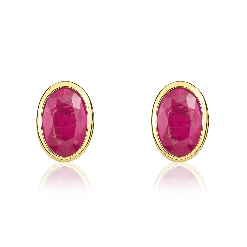 9ct Yellow Gold Ruby 6x4mm Oval Rub Over Set Stud Earrings 33-23-018.