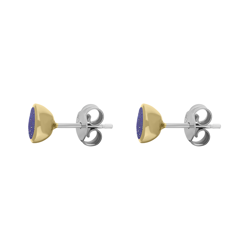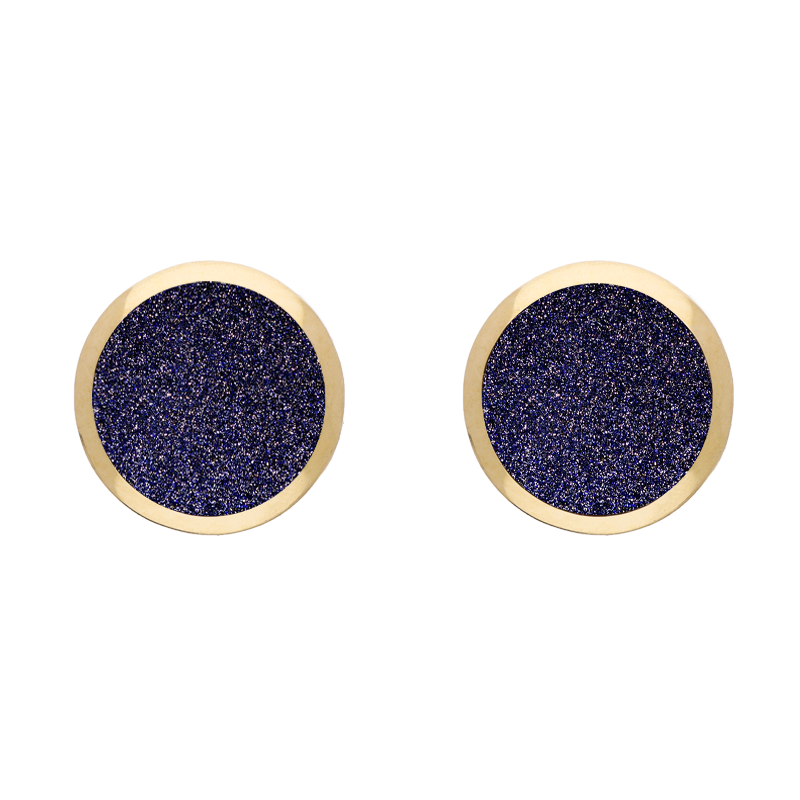 9ct Yellow Gold Sterling Silver Blue Goldstone Stepping Stones Round Stud Earrings - E1292 (SPS-949)