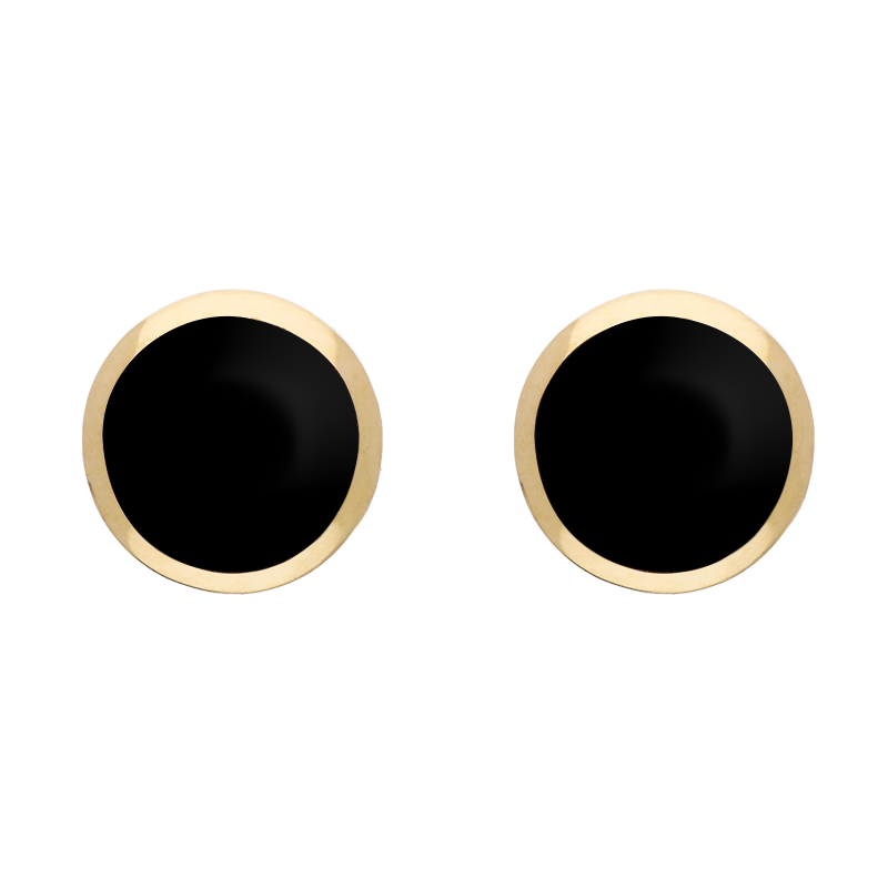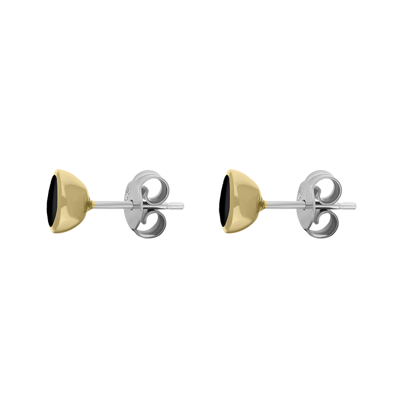 9ct Yellow Gold Sterling Silver Whitby Jet Stepping Stones Round Stud Earrings - E1292 (SPS-368)