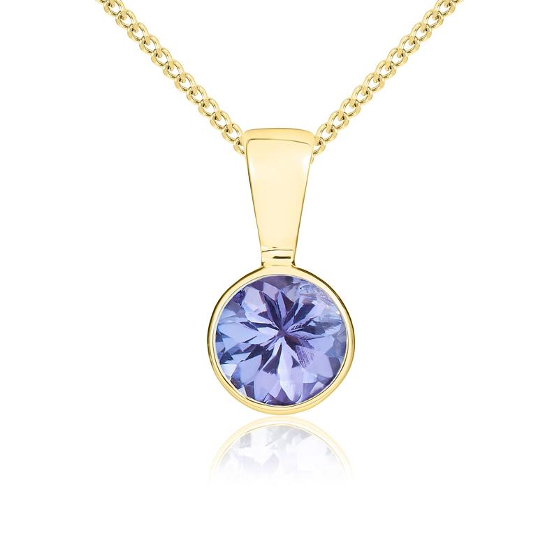 9ct Yellow Gold Tanzanite 5mm Round Rub Over Set Pendant