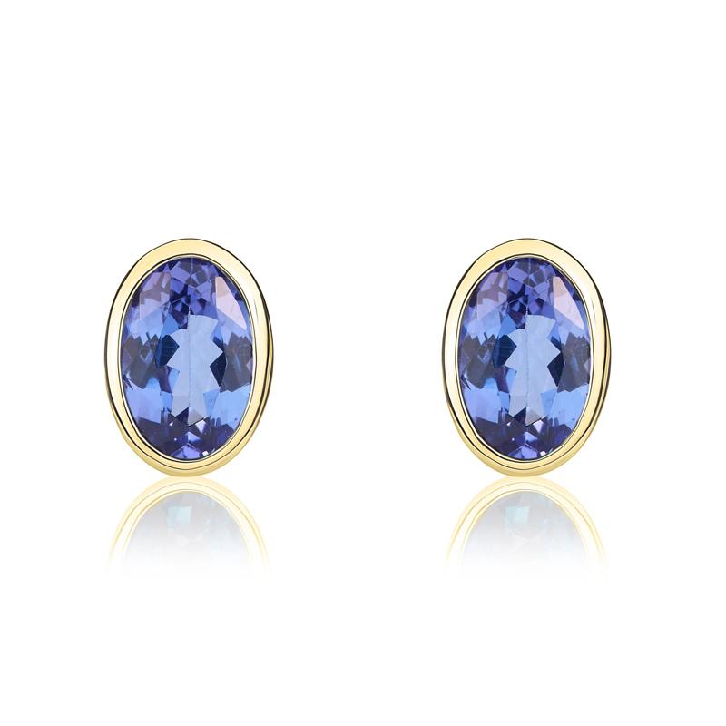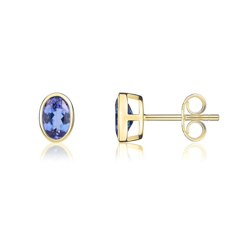 9ct Yellow Gold Tanzanite 6x4mm Oval Rub Over Set Stud Earrings. 33-24-002