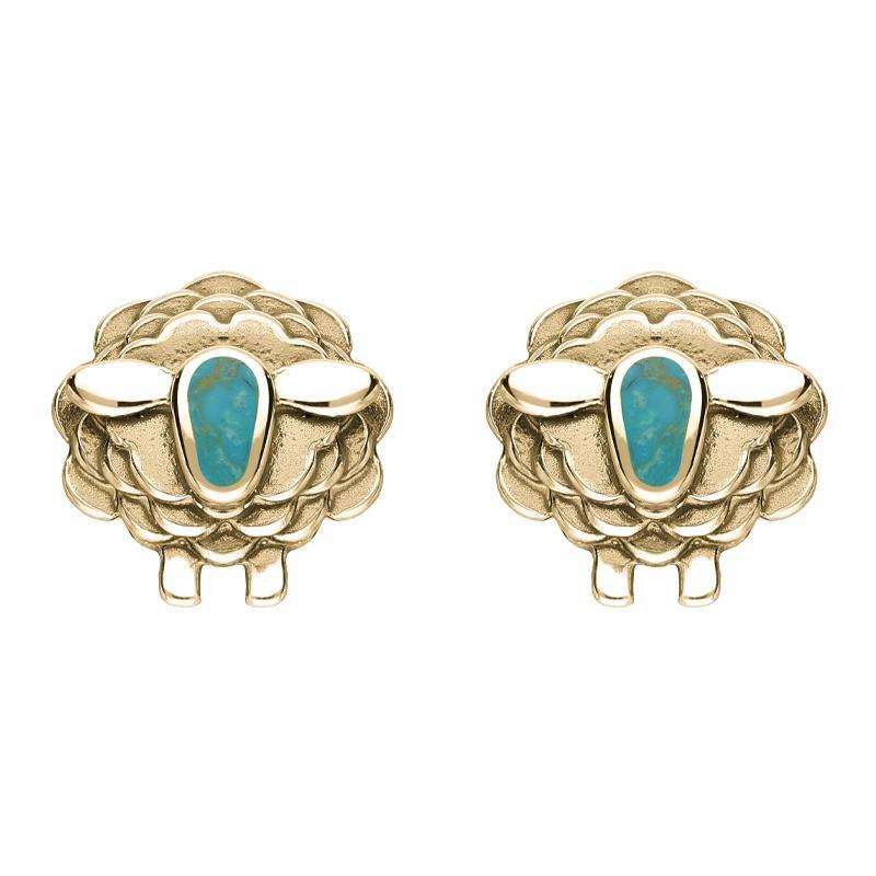 9ct Yellow Gold Turquoise Sheep Stud Earrings, E2530.