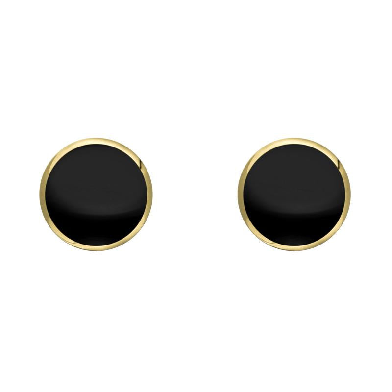9ct Yellow Gold Whitby Jet 5mm Classic Small Round Stud Earrings. E002.