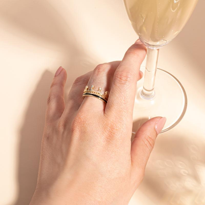 9ct Yellow Gold Whitby Jet Diamond Tiara Patterned Band Ring - R1222 (CWN-033)