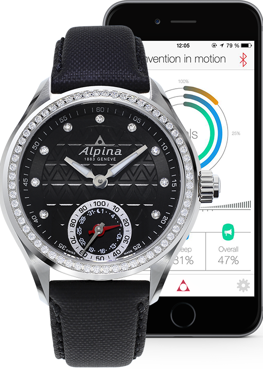Alpina Horological Smartwatch Motion X Quartz. Powered by MotionX, the Swiss Horological Smartwatches are capable of bi-directional communication with iPhone and Android apps. The Swiss Horological Smartwatch is the synthesis of high-tech innovation and traditional Swiss watch craftsmanship; it is the link (no pun intended) between modern and classic, and the bridge between Silicon Valley and Switzerland. There is no digital screen on the Swiss Horological Smartwatch. Instead, the beautiful laser cut hands on the watch dial display information in analog form. The Swiss Horological Smartwatches retain their natural classic beauty and can deliver the benefits of the quantified self, all without ever having to recharge a battery.