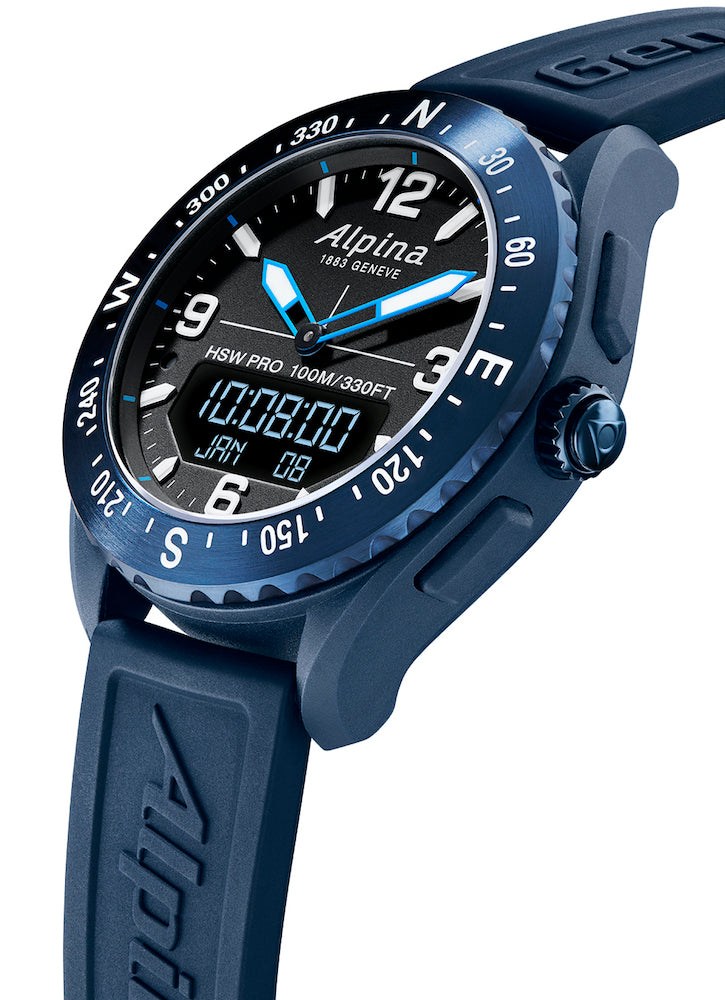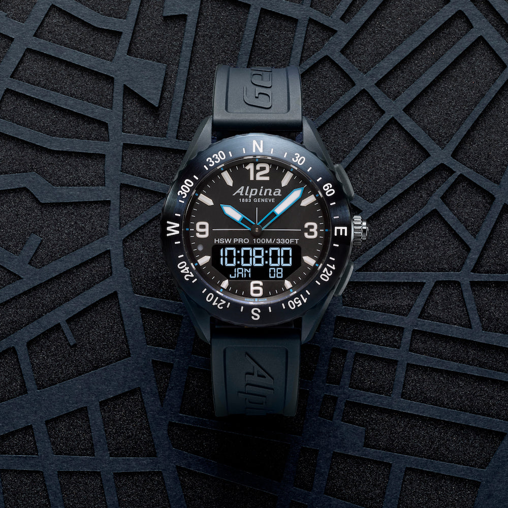 Alpina Watch AlpinerX Smartwatch AL-283LBN5NAQ6. Alpina carries a long history of innovation and collaboration. The AlpinerX Smart Outdoors watch uses advanced measurement functions benefiting from environmental sensors: UV, temperature, altitude, pressure, north direction. The functions are measured in real time by the watch. They can be displayed on the digital display as well as time, date, activity, stopwatch and other time recording functions.