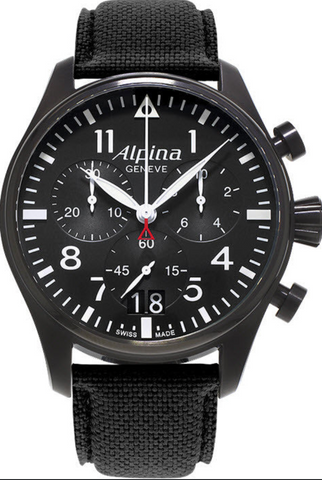 Alpina Watch Startimer Pilot AL-372B4FBS6. Our customers benefit from continuous technical advances that match the ever increasing demands of modern sport challenges. Our manufacture is both workshop and hi tech lab, and Alpina continually invests in state of the art machinery and processes. Our watch makers use the most modern, high precision tools available in the world today, and every watch undergoes strict quality control tests and inspection before leaving our factory.
