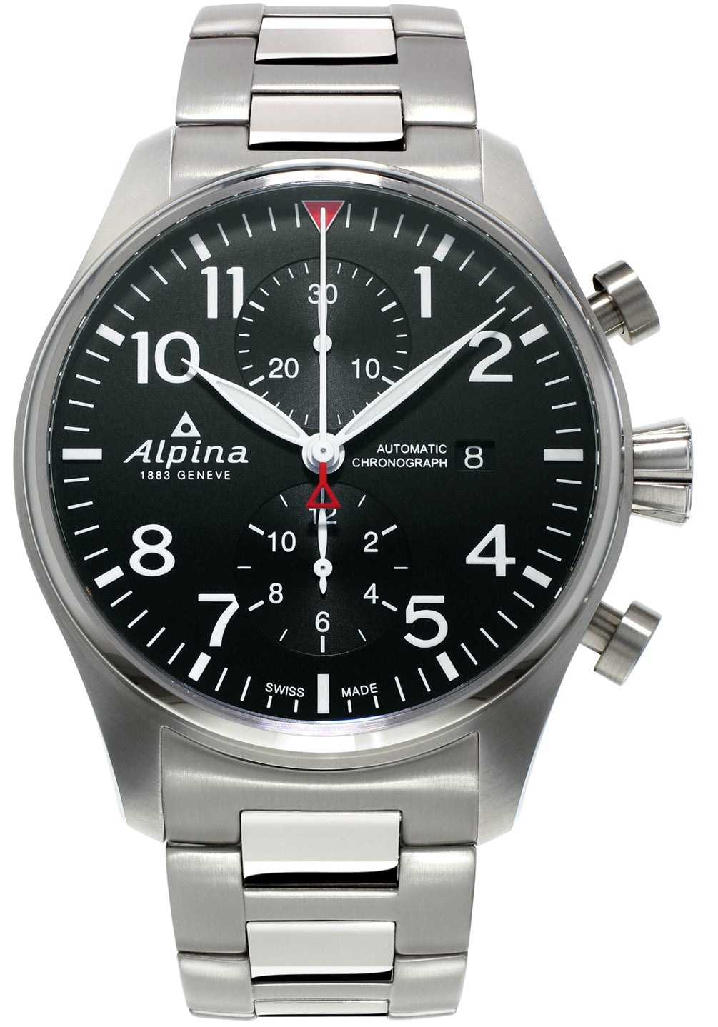Alpina Watch Startimer Pilot Chronograph AL-725B4S6B. From the very beginning, as far back as 1883, Alpina watches has been associated with horological innovation. Whether it was our innovative way of creating an excellent working environment, or through the introduction of new quality control criteria before anyone else, Alpina watches has always sought ways to improve how things are done.