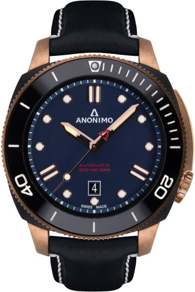 Anonimo Watch Nautilo Mens AM-1002.08.005.A05. Continuing with their renowned and distinctive case designs, Anonimo watches have released their Nautilo collection which showcases large masculine 45.5mm cases where the crowns are positioned lower down at 4 o clock, giving each model a unique and contemporary finish.