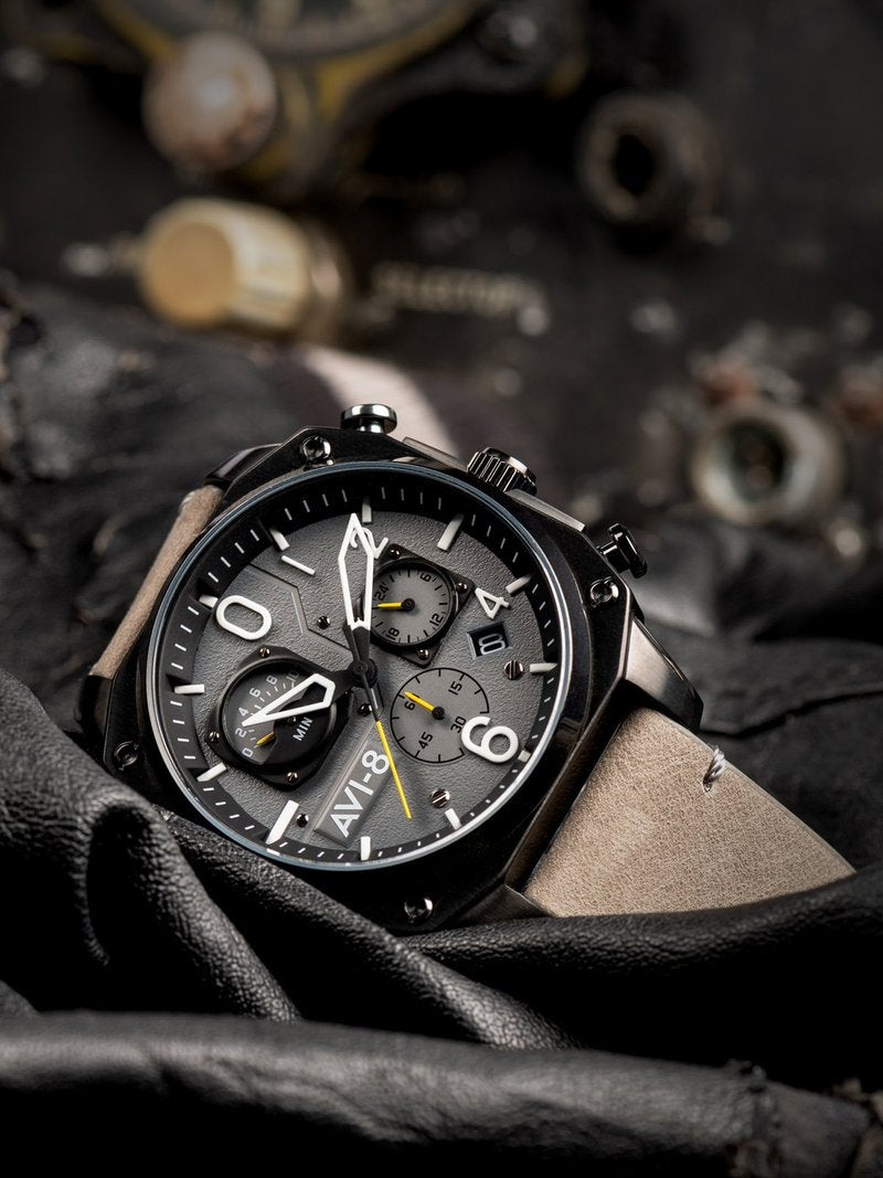 AVI-8 Watch Hawker Hunter AV-4052-03. The best engineers, scientists, designers and pilots have combined over the years to produce cutting edge machines that were designed for the crucial purpose of a country's defense. Drawing on the absolute best in materials and resources, a series of iconic planes have emerged over the years that serve as a benchmark to look upon in mans progress in the sky. AVI-8 watches seeks to honor both the aircraft and the untold story of the airmen who have dedicated themselves both in and out of the cockpit to bring these incredible machines to life.