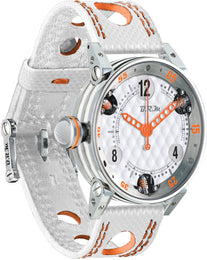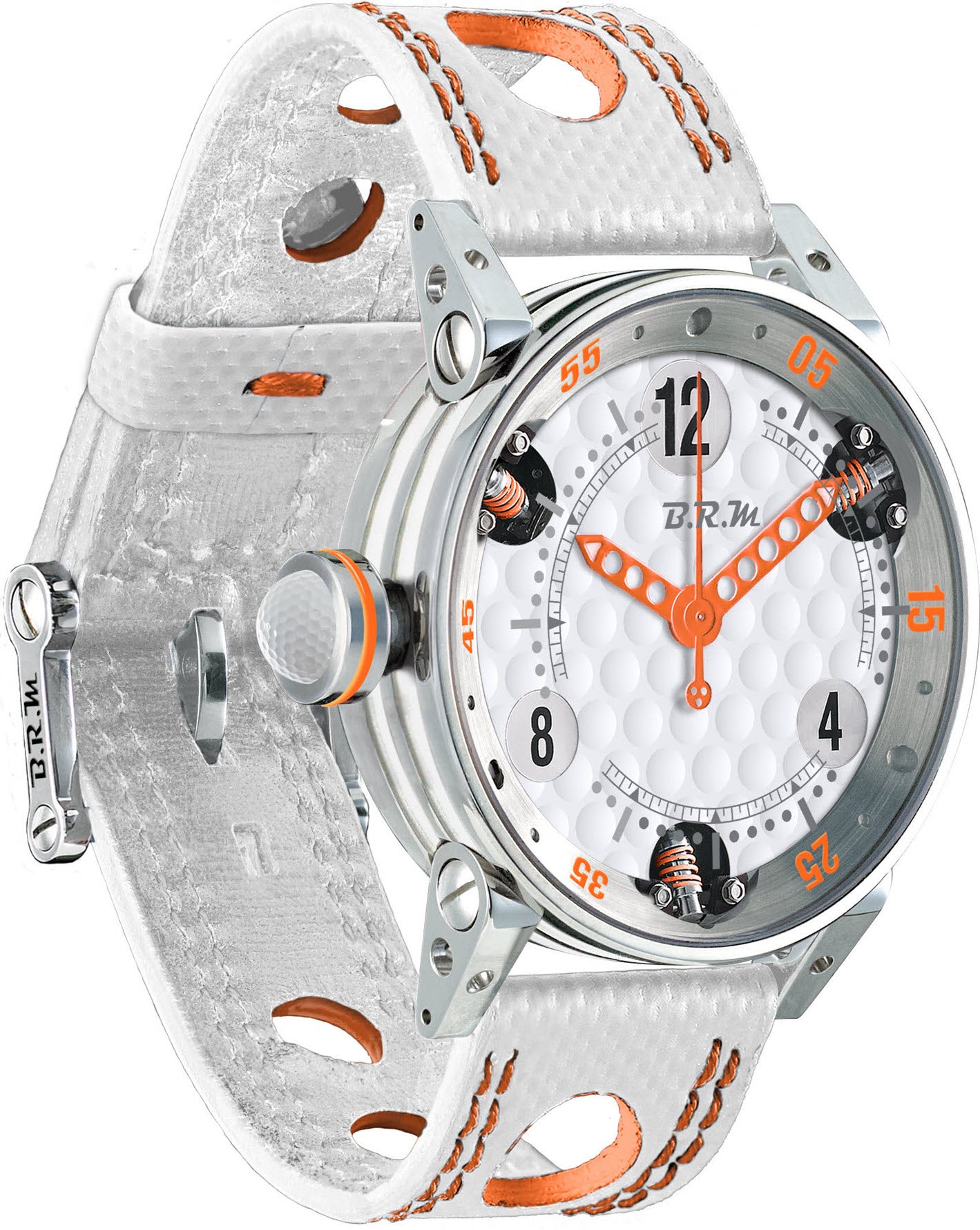 B.R.M Watch Golf Master Ladies Orange Hands GF7-38-SA-AO. Passionate about high level sports, B.R.M. Watches Bernard Richards set himself the challenge of allowing you to tell the time on your chosen field of play. Thanks to the French made technology of this unique timepiece, you can enjoy your sport without restricting your movements. Its full floating system guarantees you that shocks are completely absorbed.