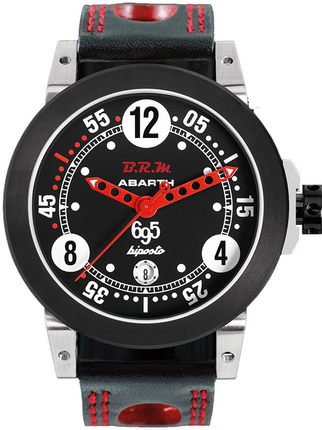 B.R.M Watch V6-44 Abarth Red Hands V6-44-ABARTH 695. BRM watches is a French watchmaking manufacture, born of the strength of commitment and competitive spirit that has always fuelled Bernard Richards. Armed with over 25 years watchmaking experience,