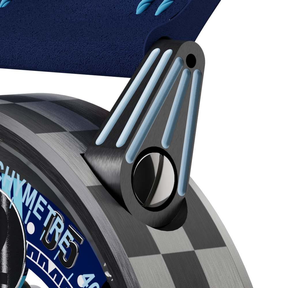B.R.M. Watch V6-44 Martini Racing Limited Edition V6-44-SA-DAM-MR02. Celebrating the essence of speed and refinement, B.R.M Chronographes proudly maintains its partnership with Martini Racing, embodying the perfect alliance between horological sophistication and the legendary heritage of the automotive world. This creation showcases all the major features that contribute to the manufacture's success in motorsports, including perforated hands, a checkered stainless steel case, shock absorbers, and perforated straps.