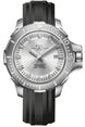 Housed within the impressive 43mm titanium case of this Ball Deepquest watch is the COSC certified automatic BALL RR1101-C calibre which promises a shock resistance of 7,500Gs and a water resistance of 3,000 metres. The scratch resistant sapphire crystal glass sits above a stunning silver dial set with 15 micro gas tubes that will glow in the dark for up to 25 years without requiring any recharge. To finish the masculine design, a black rubber strap and titanium buckle is added allowing for easy wear.