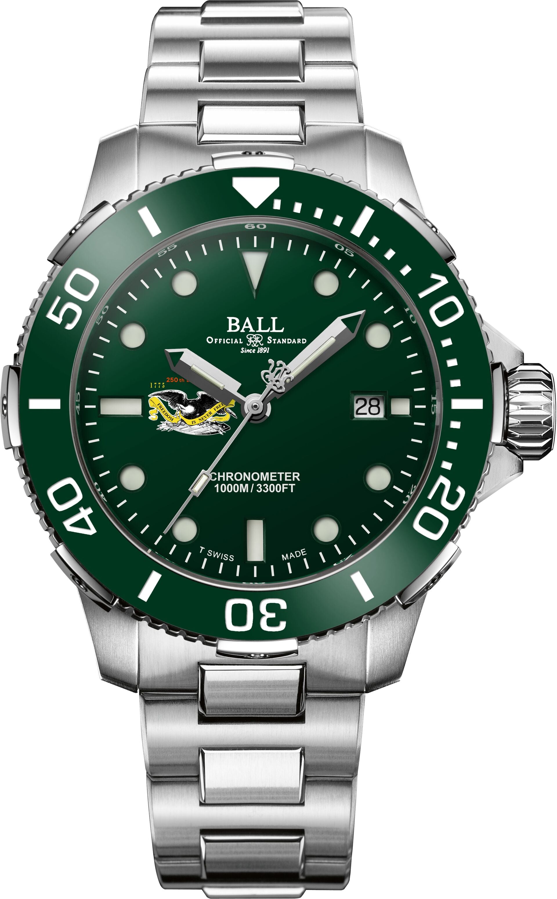 Ball Watch Company Engineer Hydrocarbon DeepQuest Protector Limited Edition Watch DM3002A-S10C-GR. In celebration of the 250th birthday of the U.S. Marines, BALL Watch Company presents the Engineer Hydrocarbon DeepQUEST Protector. From its titanium monobloc case and patented helium release valve crown to 1,000 meters of water resistance, it was born for adventure in the sea, land and sky. The DeepQUEST Protector delivers performance and leaves the frills behind, in order to move ahead with freedom.