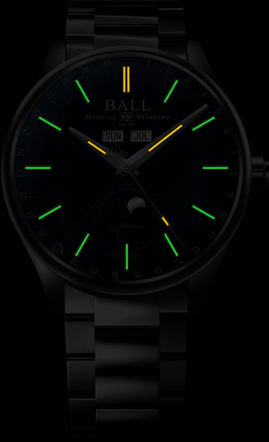 Ball Watch Company Engineer II Moon Calendar Limited Edition NM3016C-S1J-BE. Imagine the possibilities of simple functionality and elegant design. Imagine the performance of fine tuned precision paired with tough craftsmanship. And imagine the unstoppable glow of micro gas tubes. Rooted in purposeful watchmaking, the Engineer II Moon Calendar is a dress watch with distinction. From its artful moon phase display to its robust stainless steel, it is a timepiece designed to go everywhere imagination leads.