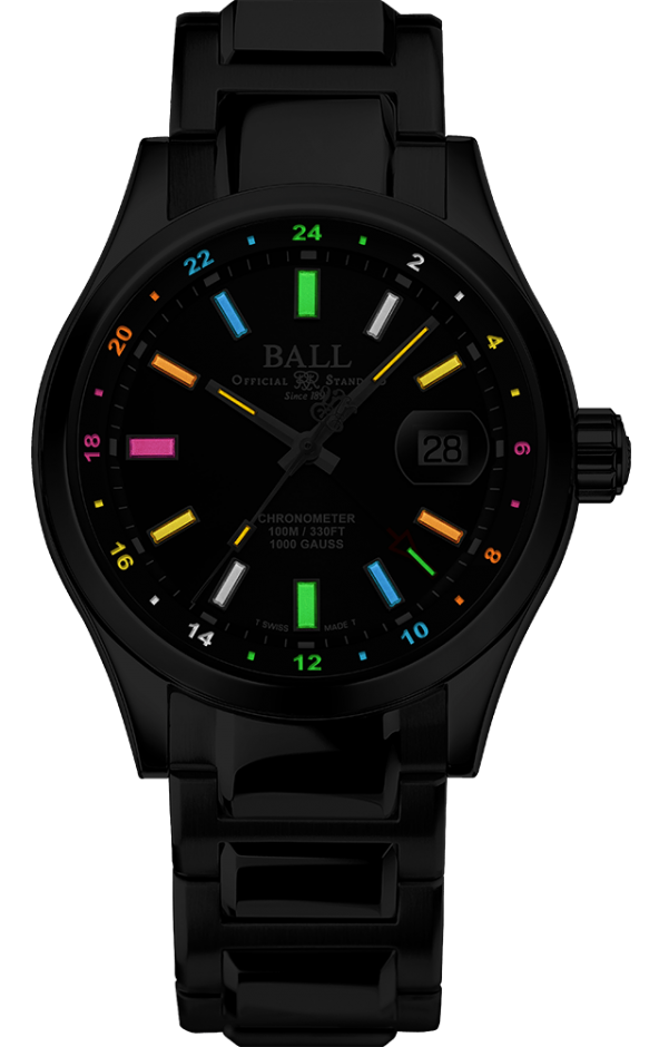 BALL Watch Company Engineer III Endurance 1917 GMT GM9100C-S2C-GYR. The 41mm Engineer III Endurance 1917 features BALL’s new Manufacture GMT Caliber RRM7337-C – a true GMT chronometer co-developed with Soprod – wrapped in a 904L stainless steel case and shining with micro gas tube luminosity. Three complementary models are also available, each designed with unique features yet united by incomparable brightness and high-quality build.