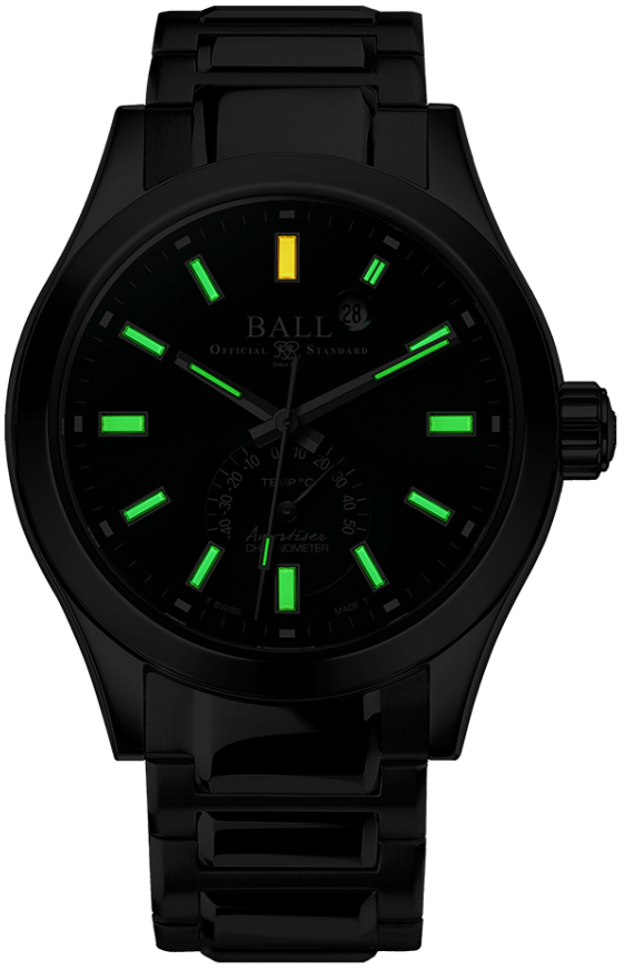 BALL Watch Company Engineer III Endurance 1917 TMT NT2222C-S3C-GRC. The new Endurance series is presented in four unique models. Complementing the functionality of the GMT offering, the 40mm TMT model features a patented mechanical thermometric indication capable of accurately measuring temperature from -35°C to 45°C (-31°F and 113°F). The robust 40mm and 45mm versions round out the series with three-hand practicality. All four models are powered by COSC certified movements, protected by our patented Amortiser® anti-shock system and enhanced by cold temperature resistance oil to ensure ultimate timekeeping in sub-zero temperatures.