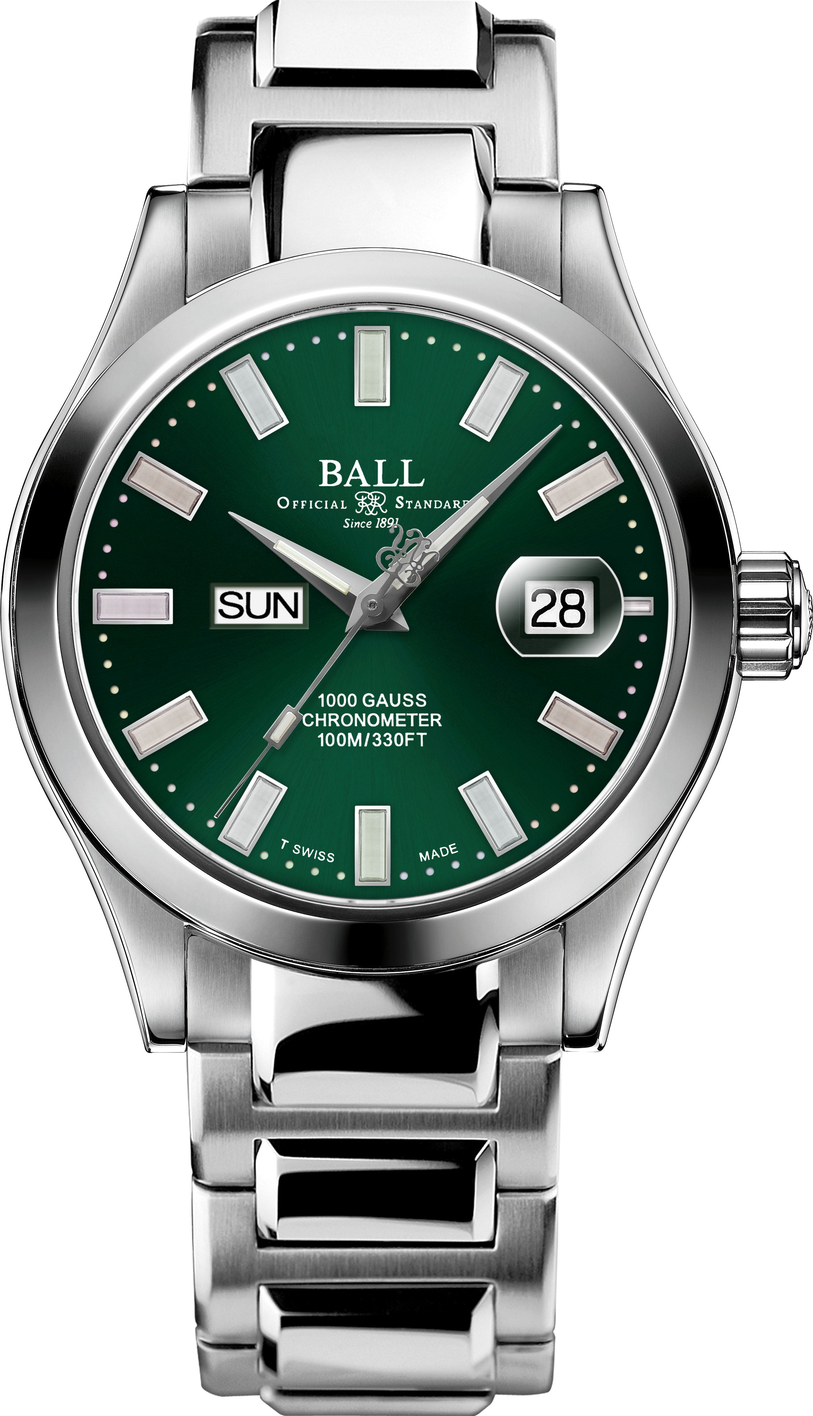 As a certified mechanical chronometer, the movement has undergone rigorous testing by the Swiss Official Chronometer Testing Institute (COSC). It is surrounded by a special mu-metal shield that delivers anti-magnetic protection to an intensity of 1,000 Gauss (80,000 A/m). Powered by the motion of your wrist, the automatic precision keeps pace with your every move powered by purpose. Going further, the BALL patented Amortiser® anti-shock system defends against unexpected shock impact.