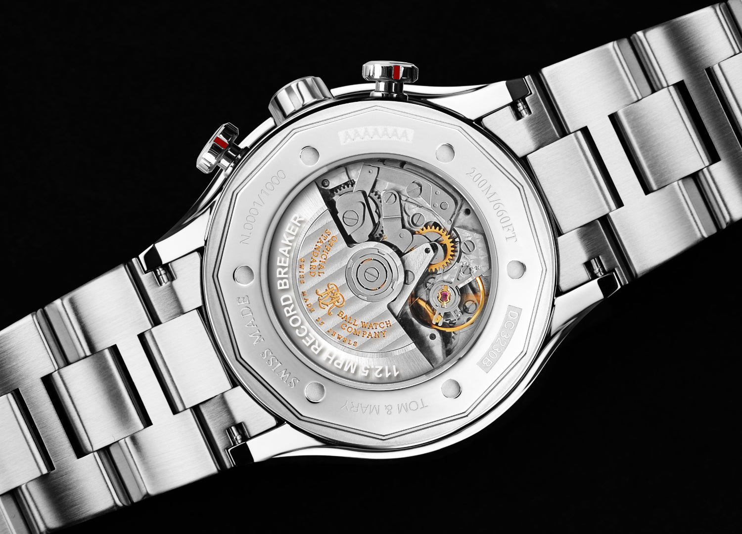 Propelled by the official railroad standard of accuracy created by Webb C. Ball, the No. 999 steam locomotive reached a record-breaking speed of 112.5 mph in 1893. On its 130th anniversary, BALL presents the Roadmaster Chronograph No. 999. A compact blend of enduring history and future-forward craftsmanship, the 42mm automatic watch measures speed with its chronograph function and tachymeter scale. Its performance carries our legacy of extreme accuracy and easy readability, essential elements of the railroad era and trusted tools for the modern explorer