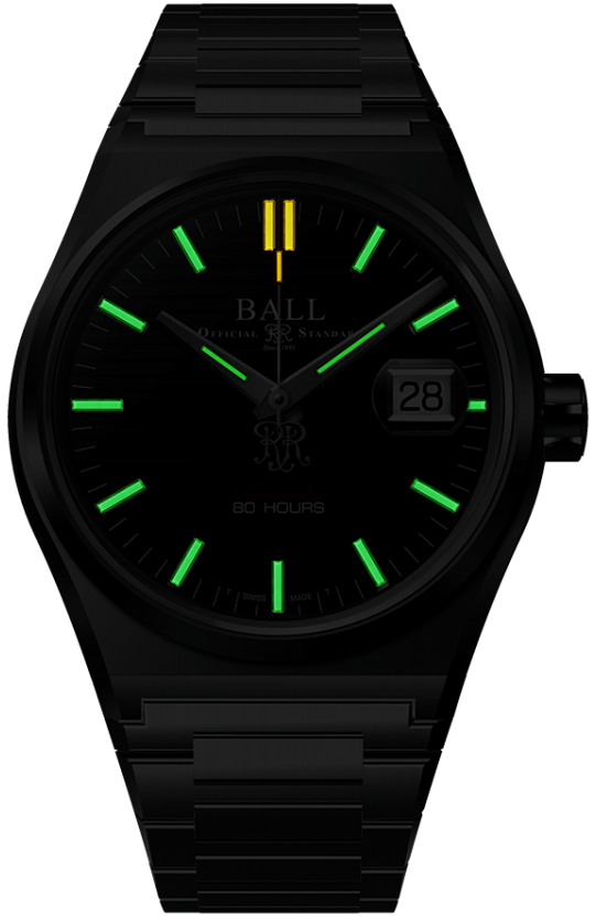 Ball Watch Company Roadmaster M Perseverer 40mm Black Limited Edition NM9052C-S1C-BK. Named for those who are in charge of guiding railroad infrastructure, the Roadmaster series is a diverse collection of timepieces that combines unique materials, robust resistance technology and distinct designs. No matter the design or utility, every Roadmaster is a tool watch united by our signature micro gas tube luminosity.