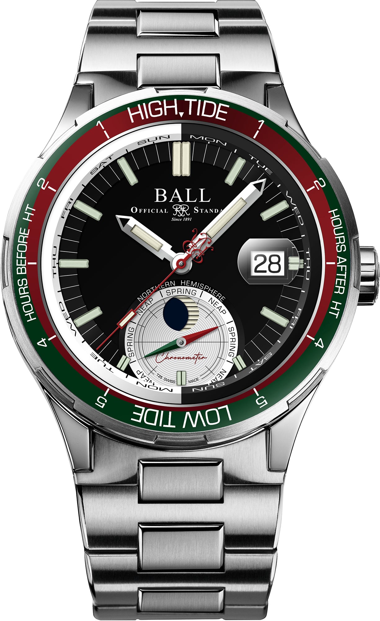 Ball Watch Company Roadmaster Ocean Explorer Limited Edition DM3120C-S1CJ-BK. Those born to voyage beyond the horizon, ready to brave any storm. The Roadmaster Ocean Explorer equips you with a rotating external bezel that indicates high and low tides for a two week period, while our in-house movement module reveals spring and neap tides alongside an illuminated moon phase indicator. Designed to move against the current, it delivers toughness presented in a 41mm stainless steel case with robust water resistance. Its unique character and performance combine to create the ultimate watch for the open seas.