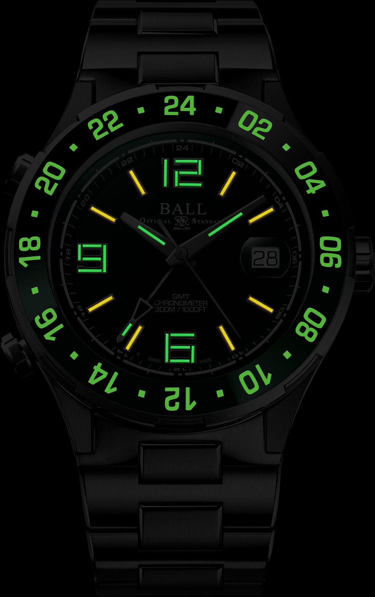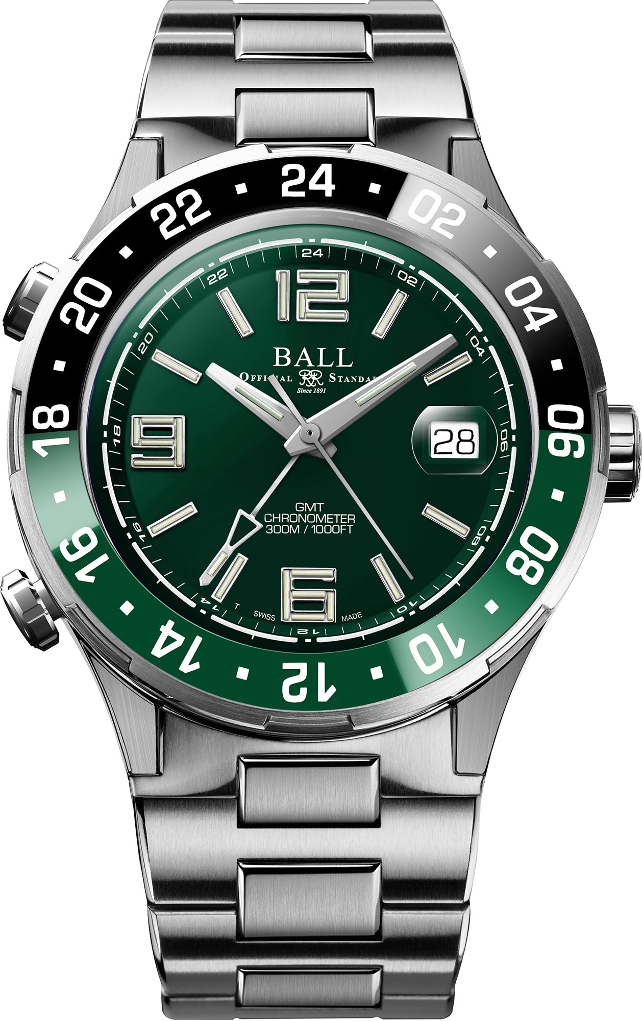 Ball Watch Company Roadmaster Pilot GMT Pilot GMT Limited Edition DG3038A-S3C-GR. As a testimonial to our commitment to excellence, the new Roadmaster Pilot GMT is equipped with two remarkable timekeeping functions that soar to new levels of convenience. When traveling, simply push the quick-set buttons to jump the local 12-hour hand to its desired position without stopping the second hand. Then easily turn the crown to jump the date correctly into position, eliminating the need to circle the dial with the hour hand. Complete with a virtually-scratchproof ceramic bezel, amazingly bright micro gas lights and chronometer-grade precision, the Pilot GMT is an ingenious everyday watch for the modern explorer.