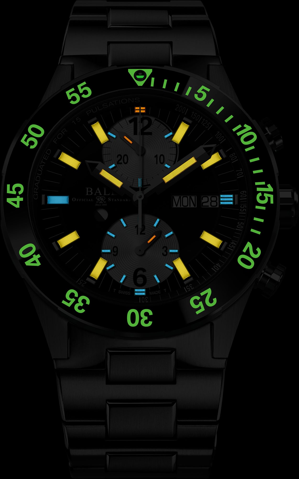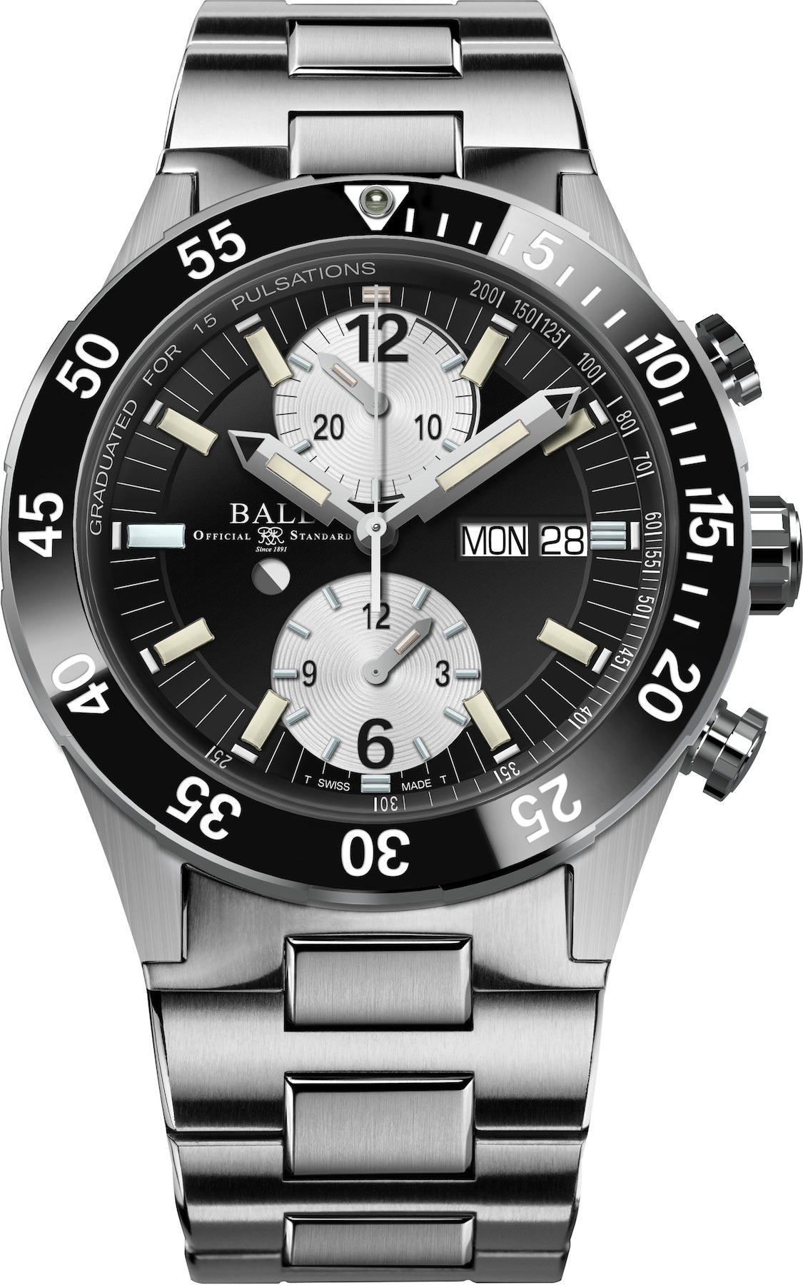 Ball Watch Company Roadmaster Rescue Chronograph Limited Edition DC3030C-S-BKWH. Whether by air, land or sea, every rescue mission is unique. But theres one common truth: timing is everything. A purpose-built tool for critical search and rescue situations, the new Roadmaster Rescue Chronograph delivers extreme accuracy, easy readability and high functionality. Engineered with a patented pusher locking system, the chronograph function works in unison with the pulsometer scale to measure heart rate, while two illuminated sub dial counters track elapsed time. And for countdowns at all hours, the ceramic diving bezel features a bold micro gas tube inset. Vital functionality and versatile form that’s ready to venture wherever necessary.