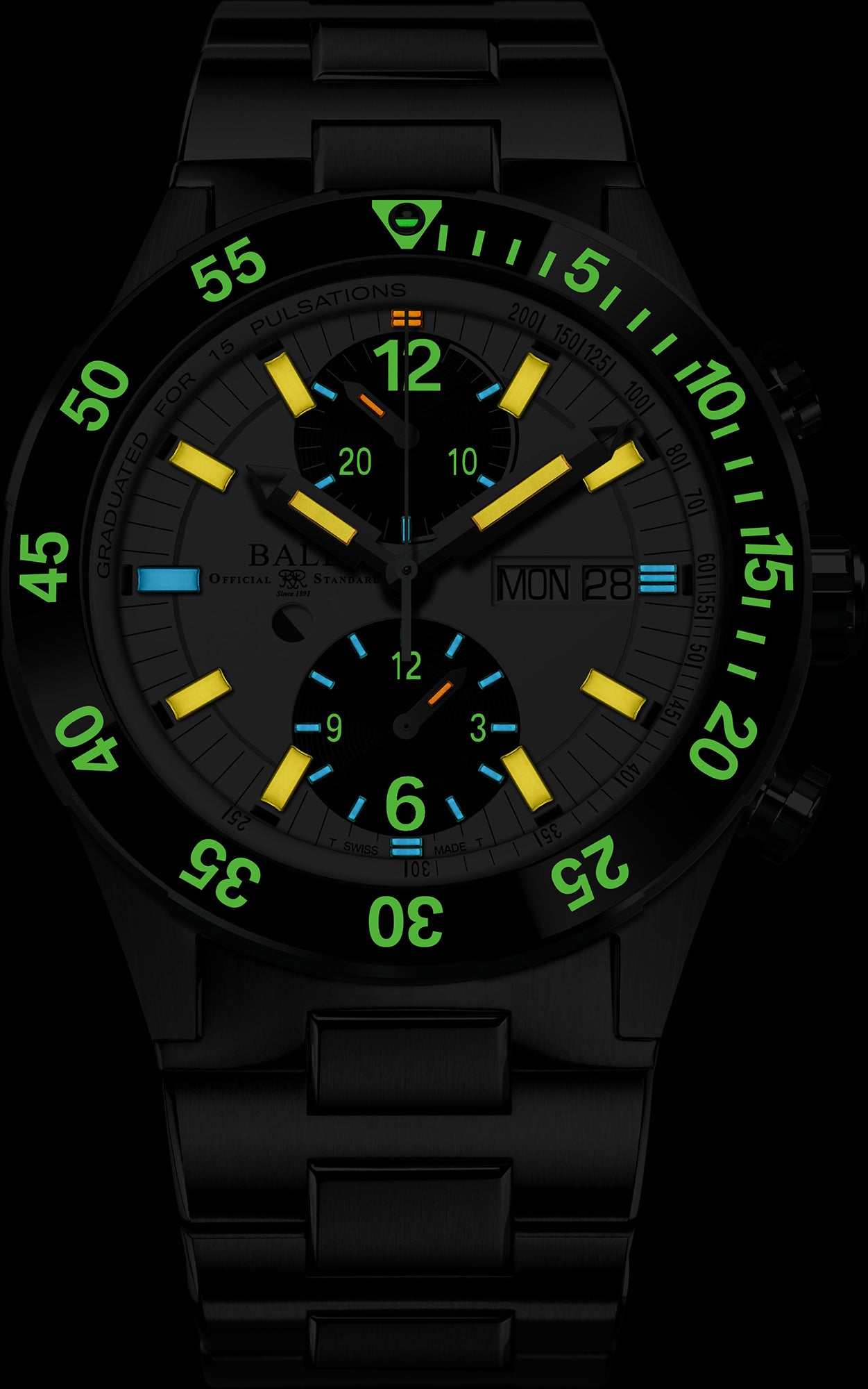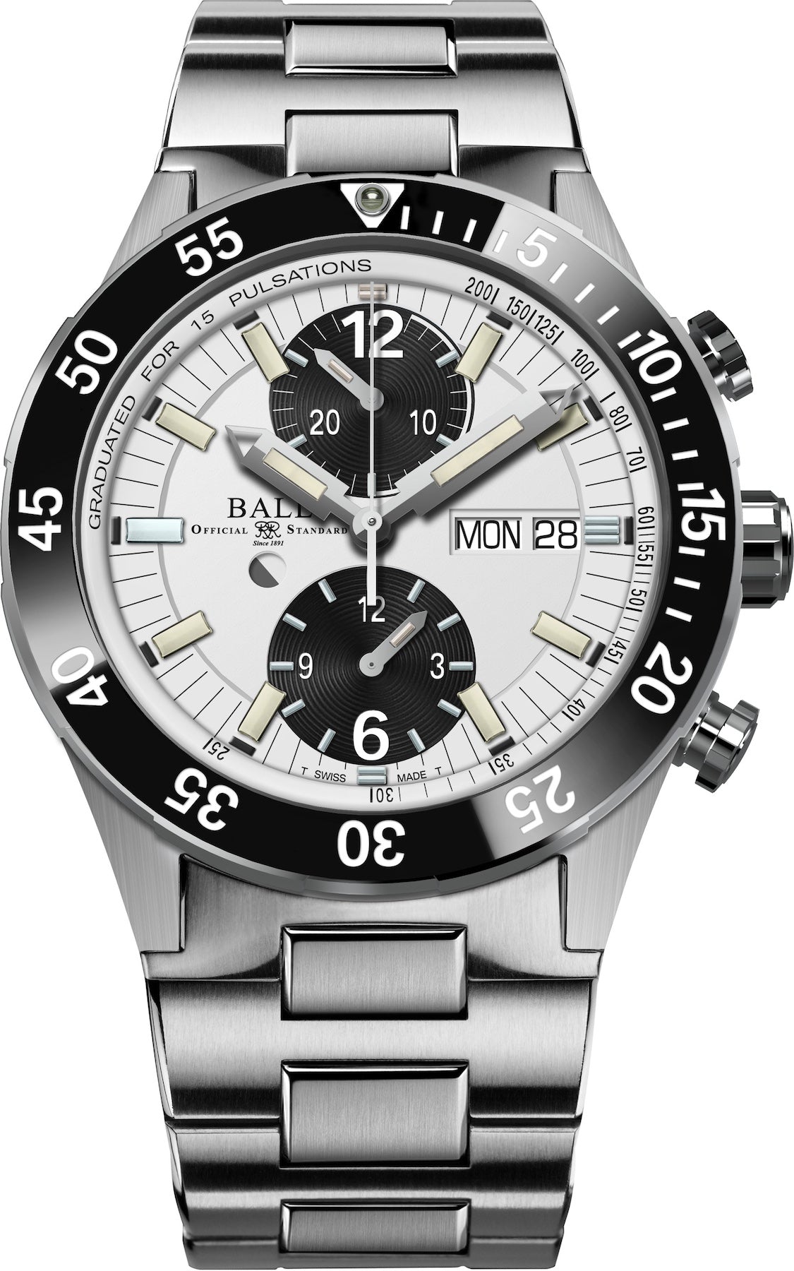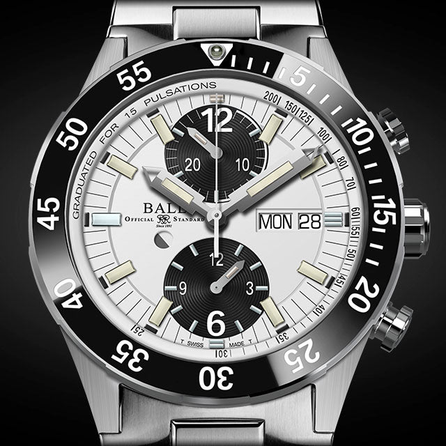 Ball Watch Company Roadmaster Rescue Chronograph Limited Edition DC3030C-S-WHBK. Whether by air, land or sea, every rescue mission is unique. But theres one common truth: timing is everything. A purpose-built tool for critical search and rescue situations, the new Roadmaster Rescue Chronograph delivers extreme accuracy, easy readability and high functionality. Engineered with a patented pusher locking system, the chronograph function works in unison with the pulsometer scale to measure heart rate, while two illuminated sub dial counters track elapsed time. And for countdowns at all hours, the ceramic diving bezel features a bold micro gas tube inset. Vital functionality and versatile form that’s ready to venture wherever necessary.